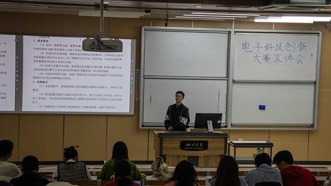 2021年10月30日,电子科技创新大赛宣讲会在best365中国官方网站江安校区综合楼C座C306教室成功举行。电子信息学院2018级学长李建平同学、王道叶同学、吴黄巍同学以及有志向参加电子科技创新大赛的同学们参与了本次宣讲会。