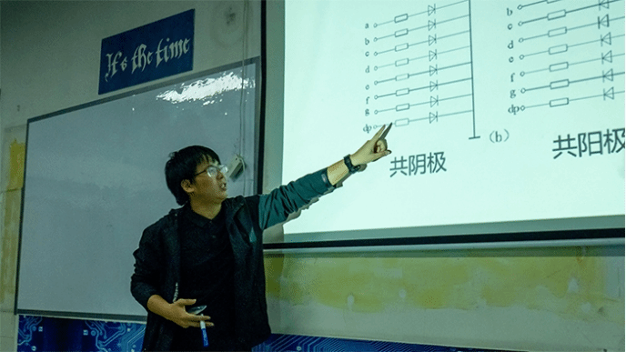 本次授课旨在增加同学们对数码管的认识以及对未来所学专业知识的了解。希望同学们都能在技术部的授课中实现知识与快乐的双丰收,在电子科技园书写属于自己的一份精彩。