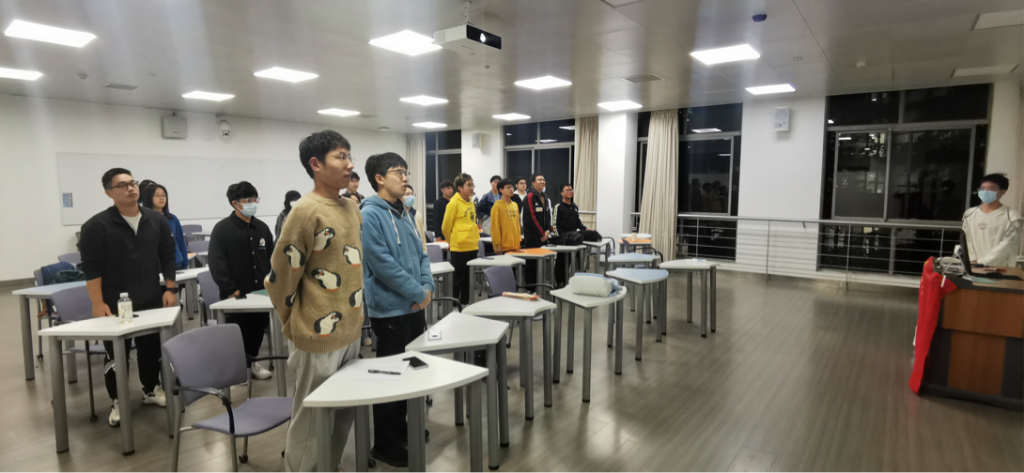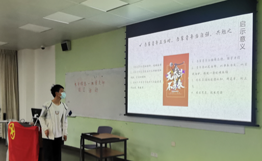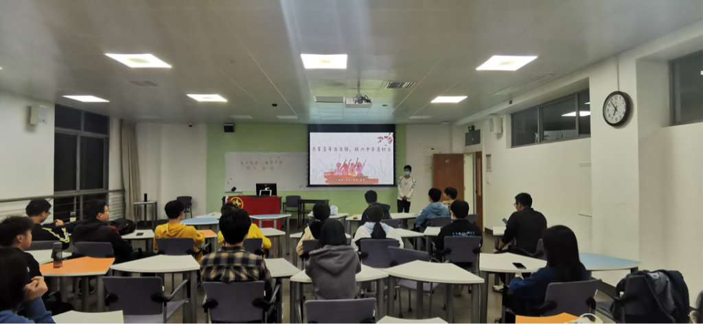 为深入学习宣传贯彻习近平总书记“七一”重要讲话精神,强化团员青年使命担当,引导团员青年坚定信念、厚植爱国情怀,2021年10月30日晚,电子信息学院电子信息工程一班团支部于江安一教A201教室召开“研学四史明初心,奋进青春勇担当”主题团日活动。支部书记罗岩泓担任主持,支部全体成员踊跃参加。