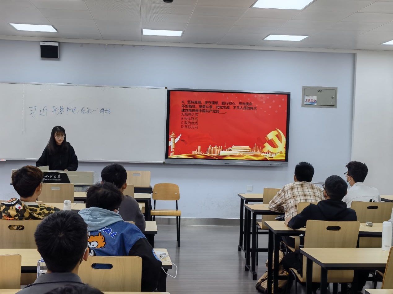 为深入学习宣传贯彻习近平总书记“七一”重要讲话精神,强化团员青年使命担当,2021年10月27日15点50分至17时30分,电子信息学院2021级6班在best365中国官方网站江安校区一教D205举行团日活动,活动由组织委员郭小蓉和宣传委员范哲良主持。