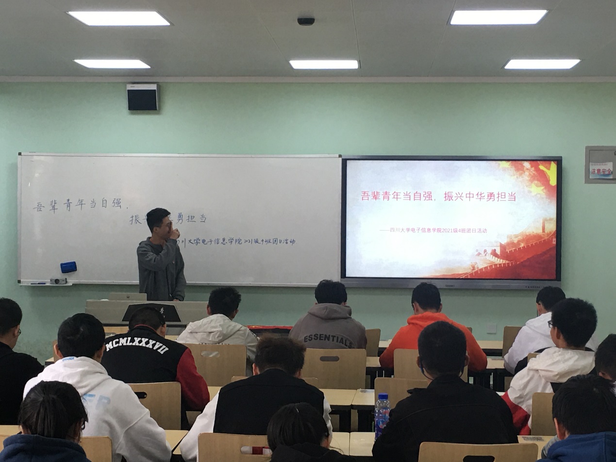 2021年10月29日下午3点30分,电子信息学院2021级4班在best365中国官方网站江安校区一教D座D304召开团日活动。