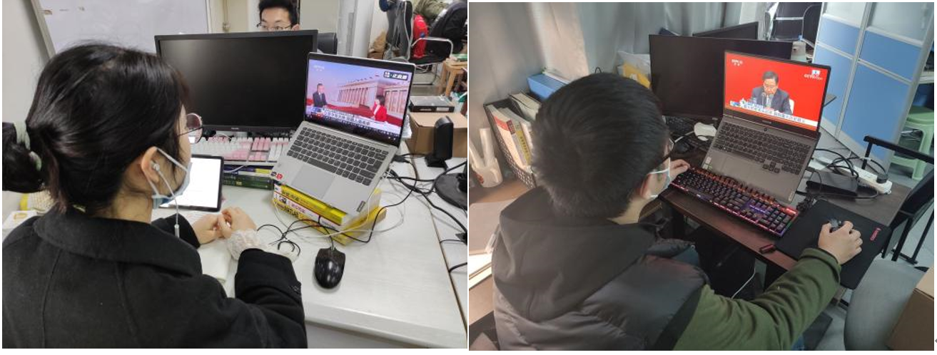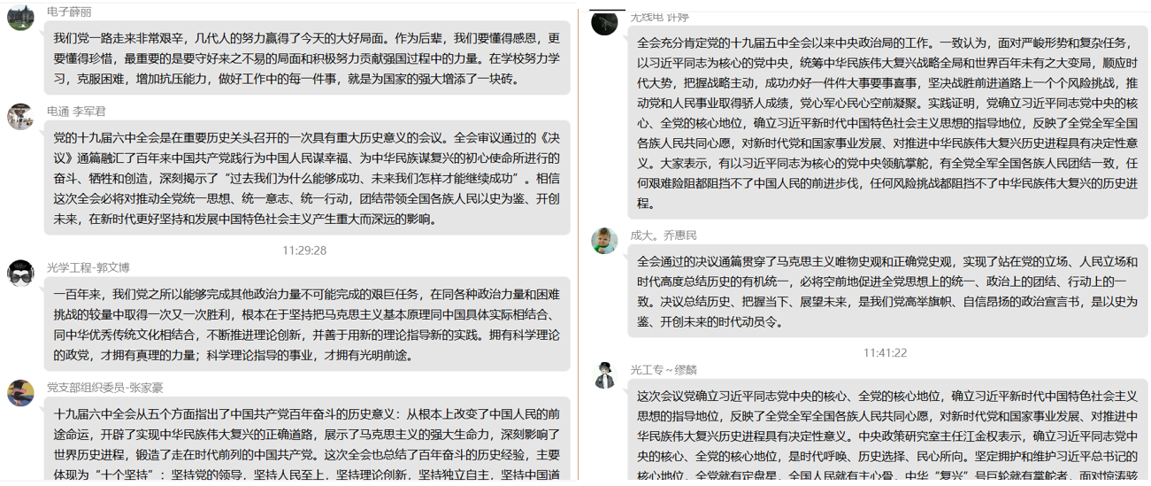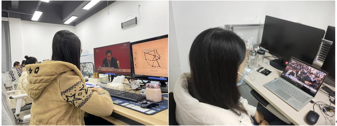 2021年11月12日上午10时,中共中央就党的十九届六中全会精神举行新闻发布会。为深入学习贯彻党的十九届六中全会精神,从百年党史中汲取不懈奋斗的力量,电子信息学院2019级研究生党支部、团支部、各班级组织收看直播。