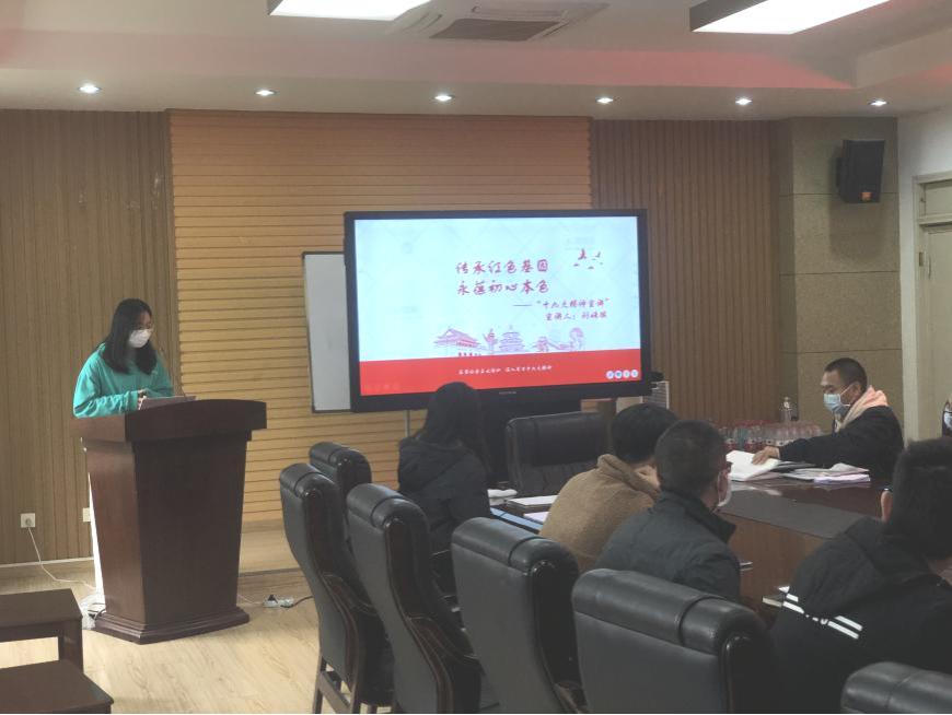 本次宣讲活动的主题是“传承红色基因,永葆初心本色。”刘姝琪同学首先讲解了“什么是红色基因”。在讲解时刘姝琪同学引述了从中国共产党建立到社会主义发展过程中的种种英雄人物的生动事例。这些故事中有“两弹一星尽显忠”的邓稼先,有“怀有老一辈爱国主义精神”的屠呦呦,有“不教饥馑闹神州”的袁隆平,亦有“蜡炬成灰泪始干”的张桂梅。刘姝琪同学在详细讲述他们的光辉事迹后以鲁迅先生的话做小结:“我们从古以来,就有埋头苦干的人,有拼命硬干的人...这就是中国的脊梁”。