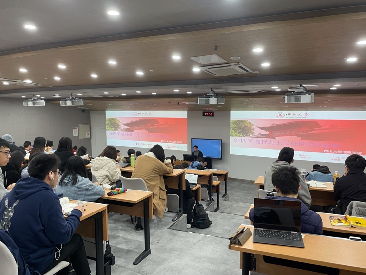 2021年12月10日下午三点,电子信息学院在望江校区基础教学楼C座101为本科2019级学生开展了一次 “学党史”专题分享会。电子信息学院2019级辅导员吴秀玲老师以及电子信息学院2019级全体学生参与了本次专题分享会。本次分享会由电子信息学院2019级本科党支部的3名党员与同学们进行学习分享。