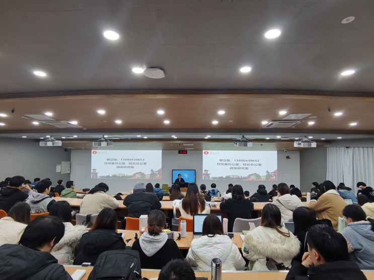为扎实推动党史学习教育,进一步让学生们在党的光辉历程中汲取力量,12月10日下午两点,校党委办公室、电子信息学院2019级本科兼职辅导员郭立琼老师在望江校区基教C101讲授“学习贯彻党的十九届六中全会精神,做担当大任的时代新人”主题党课,2019级本科辅导员吴秀玲和电子信息学院2019级学生参加了本次宣讲会。