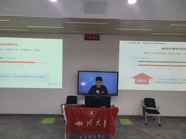 best365中国官方网站百川学生宣讲团电子信息学院分团第四次宣讲于2021年12月10日在best365中国官方网站望江校区基础教学楼C座104教室面向本科2019级同学开展。本次宣讲由2019级本科党支部宣讲员邹浩宇带来题为“习近平新时代中国特色社会主义思想是党和国家必须长期坚持的指导思想”的分享。学院李运国老师、吴秀玲老师以及2019级本科光信息科学与技术专业、通信工程专业同学参加本次宣讲会。