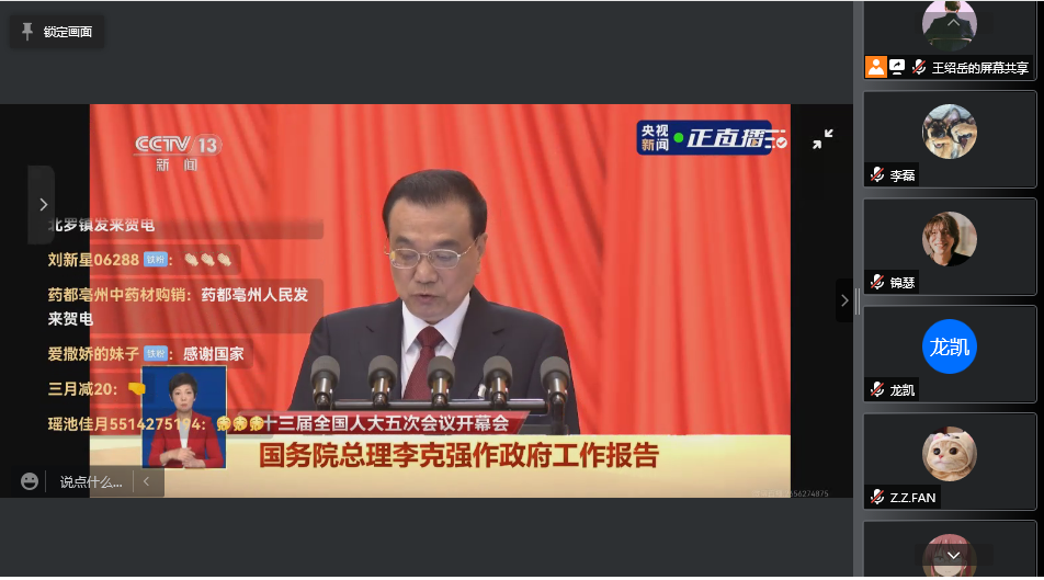 十三届全国人大五次会议和全国政协十三届五次会议分别于3月5日和3月4日在北京开幕,为积极响应学校号召,关注 “两会”动态,鼓励同学们结合自身学习、工作和生活实际领会两会精神,3月5日上午九点,电子信息学院2020级硕、博士1班组织进行人大五次会议开幕会线上观看。