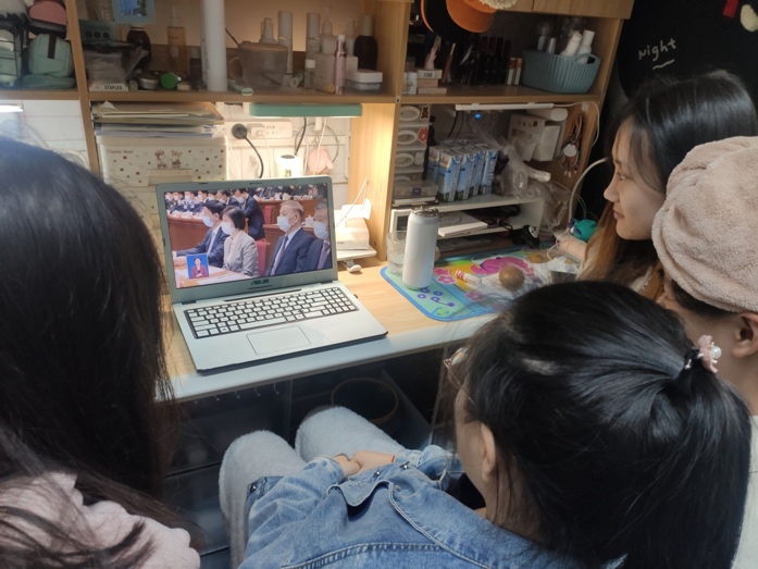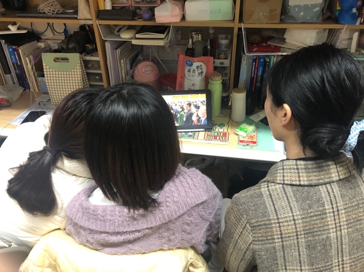 同学们认真观看两会开幕式