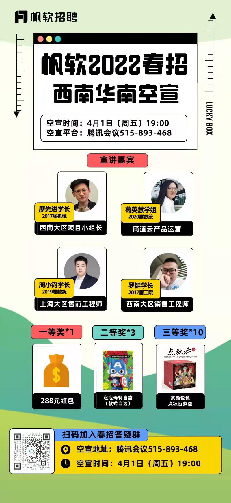 【宣讲信息】明晚(周五)19:00;腾讯会议号515-893-468,链接https://meeting.tencent.com/dm/XKcMb3RWv3Rg