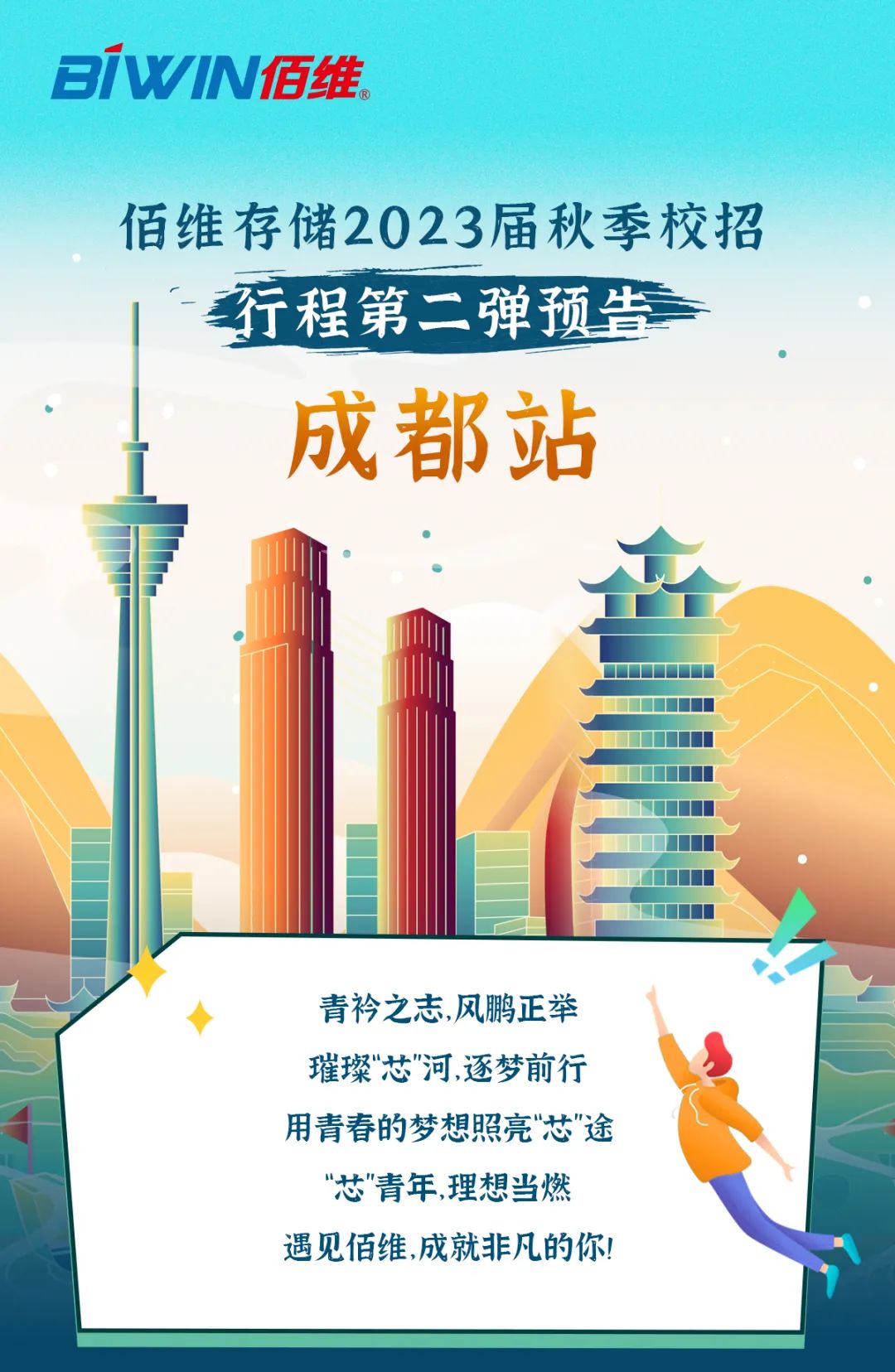 没网申的同学,还在等什么,马上点击:https://biwin.m.zhiye.com/进行网申,更多校招动态请关注“佰维招聘”公众号