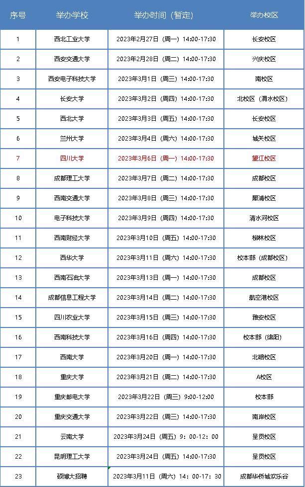 2023年春季西部重点高校毕业生巡回招聘面试会