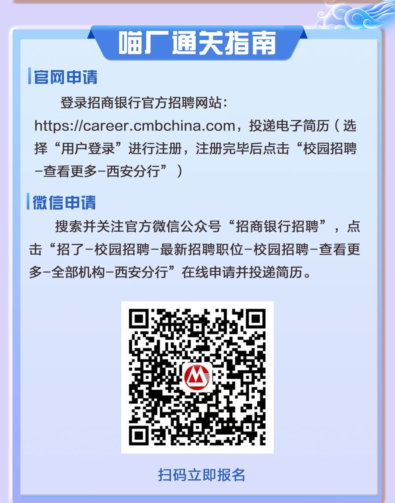 3月21日15:20就业指导中心305室招商银行西安分行2023届校园招聘