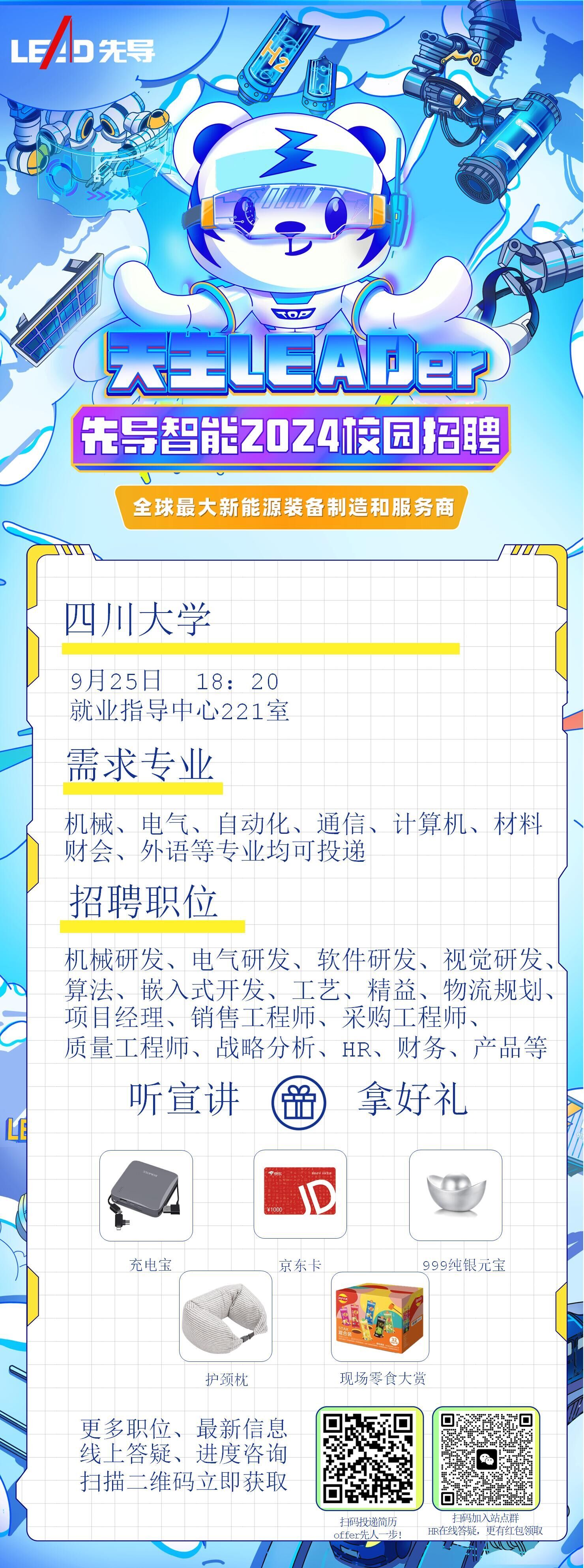 全球最大新能源装备制造和服务商——先导智能"天生LEADer"2024秋招宣讲会来啦