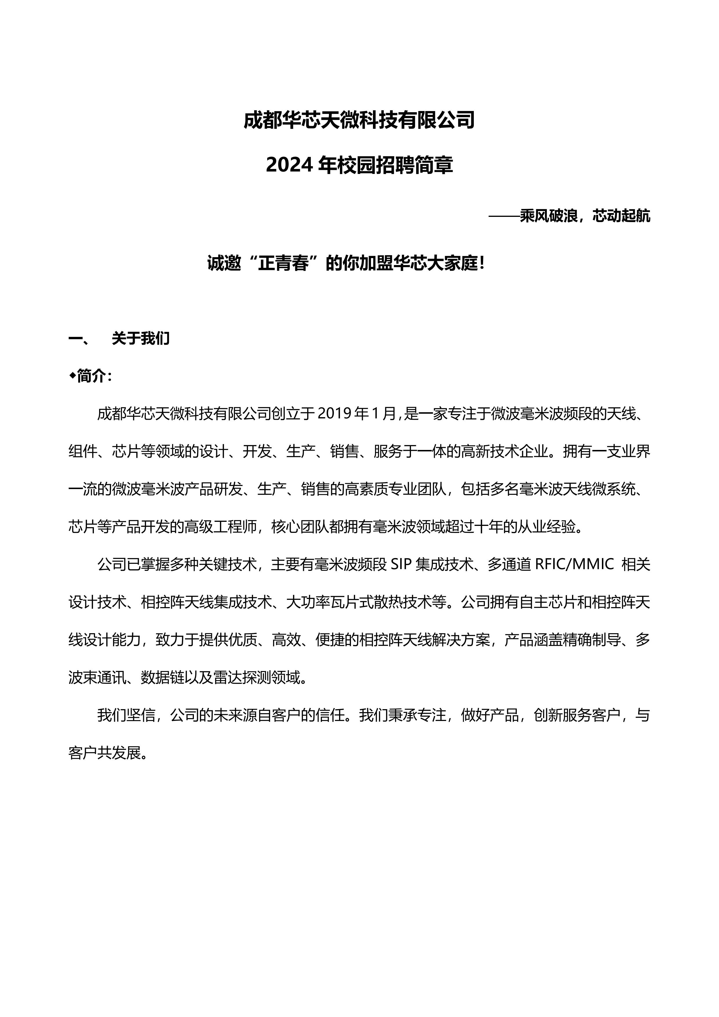 成都华芯天微科技有限公司(岗位见附件)