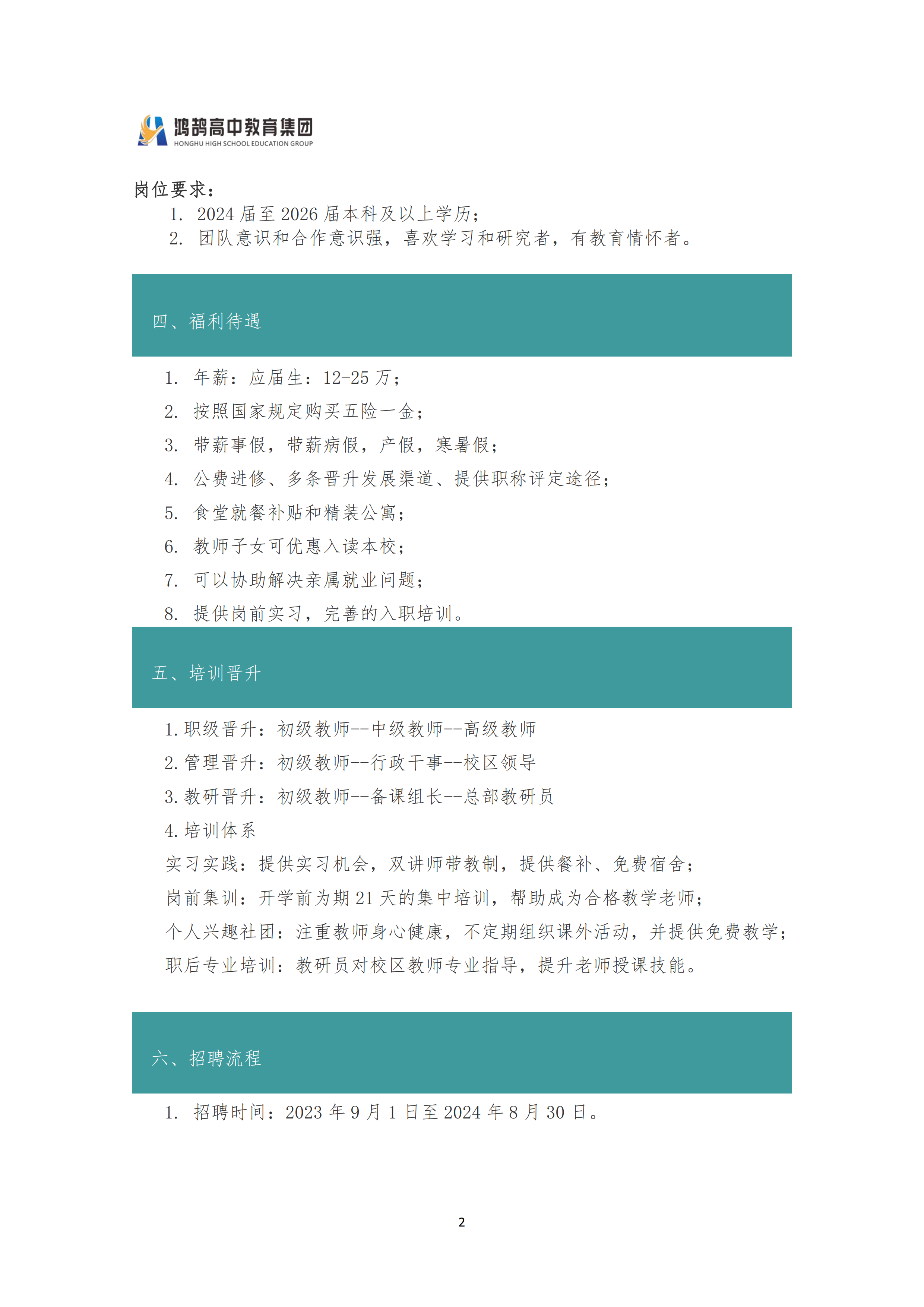 鸿鹄高中教育集团2024届校招
