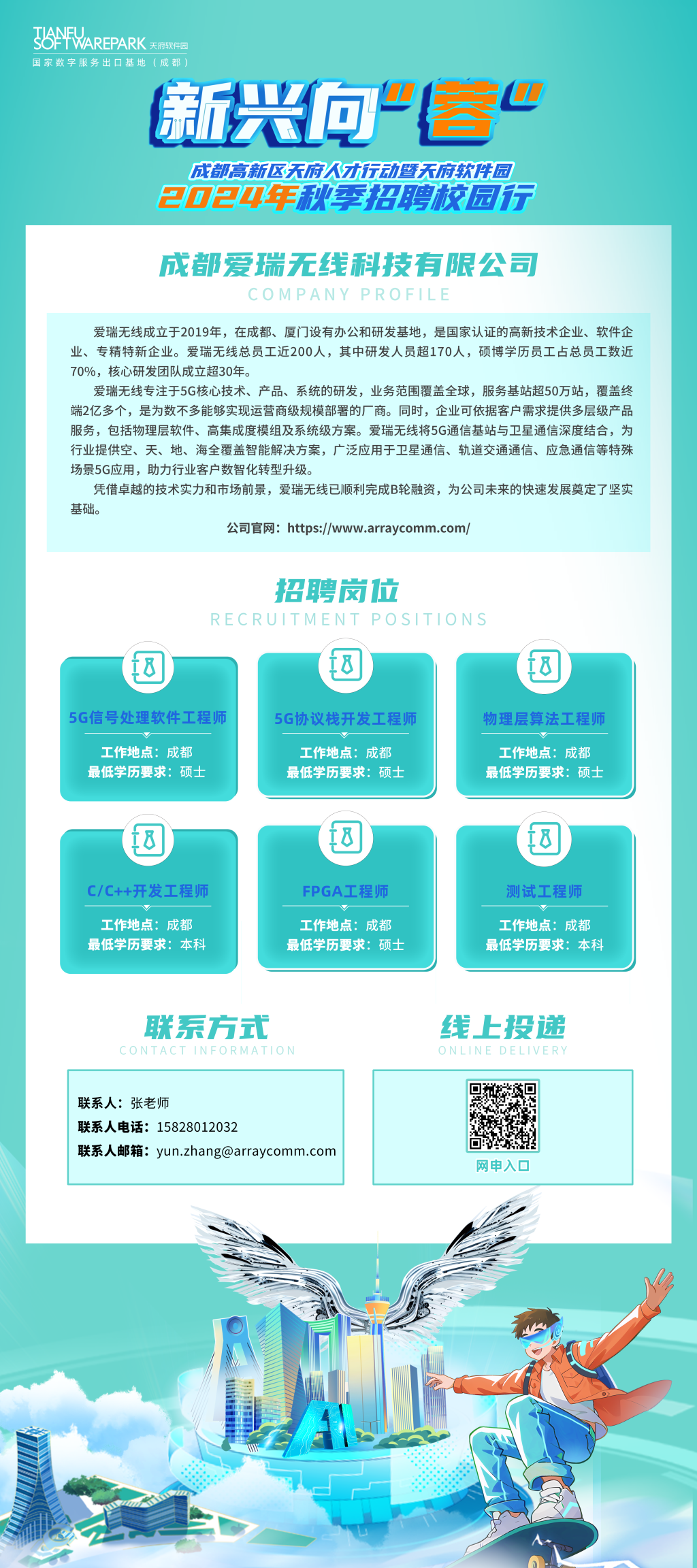 成都爱瑞无线科技有限公司2024年秋季招聘