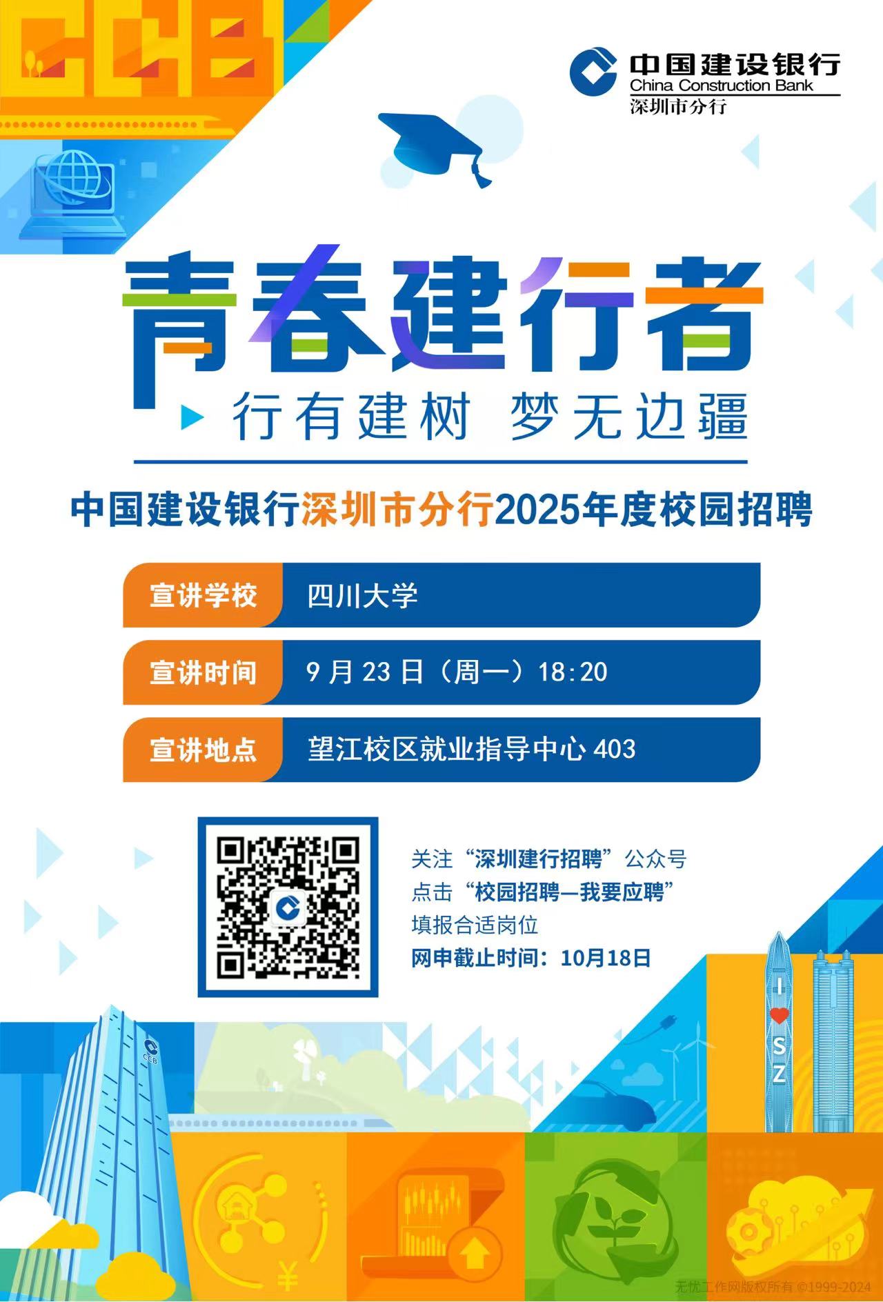 我们是9月23日18:20在best365中国官方网站(望江校区)就业指导403举办【建行深圳2025校园招聘】宣讲会的工作人员,下附宣讲会的宣传文案及海报内容,希望您能够协助宣传并转发给学生们,谢谢!