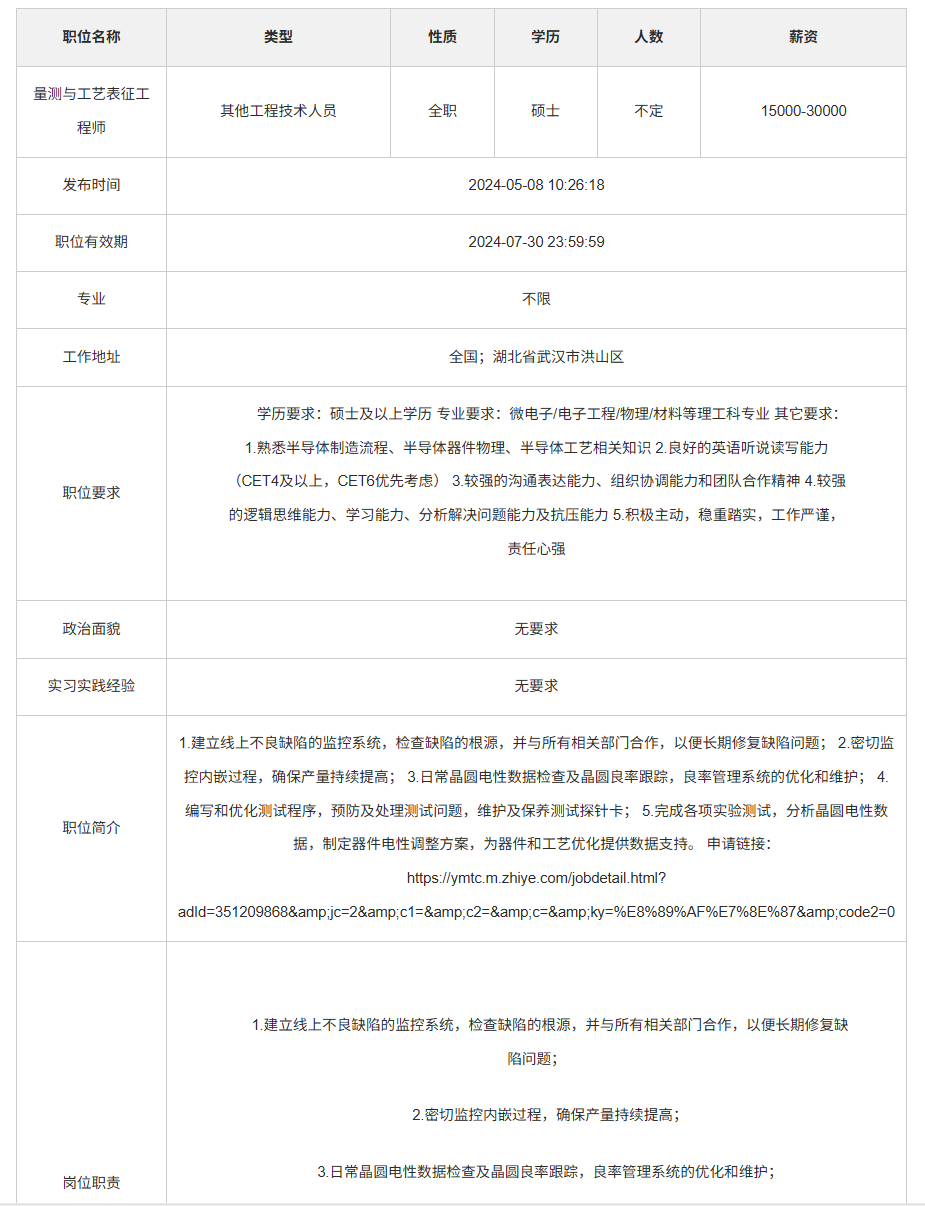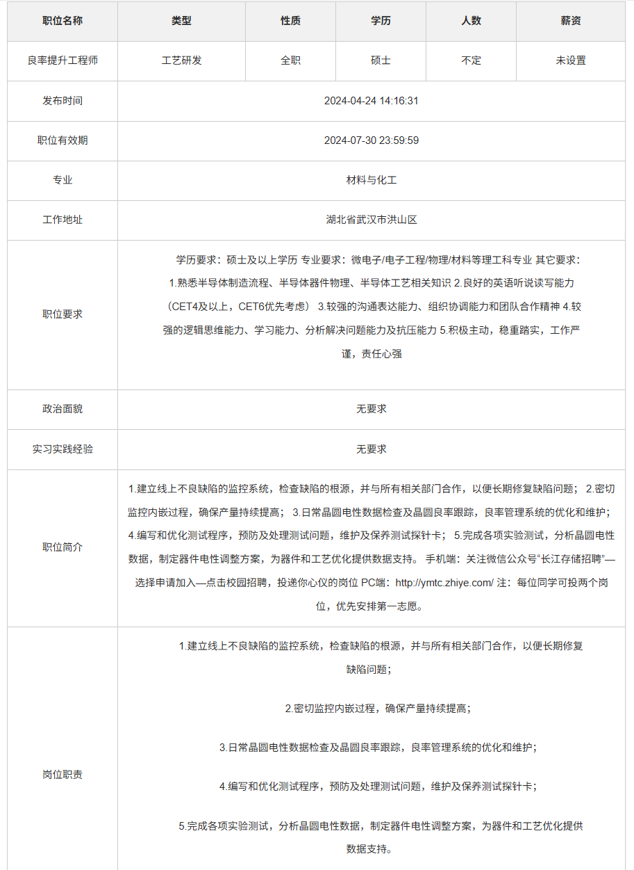 长江存储科技有限责任公司校园招聘
