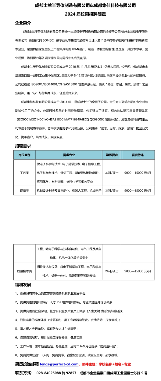 成都士兰半导体制造有限公司校园招聘