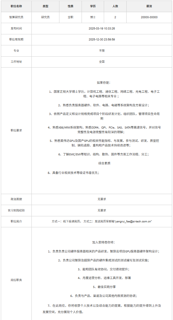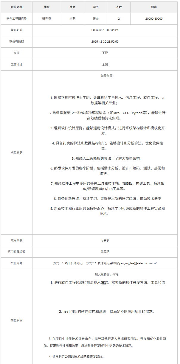 北京思特奇信息技术股份有限公司校园招聘