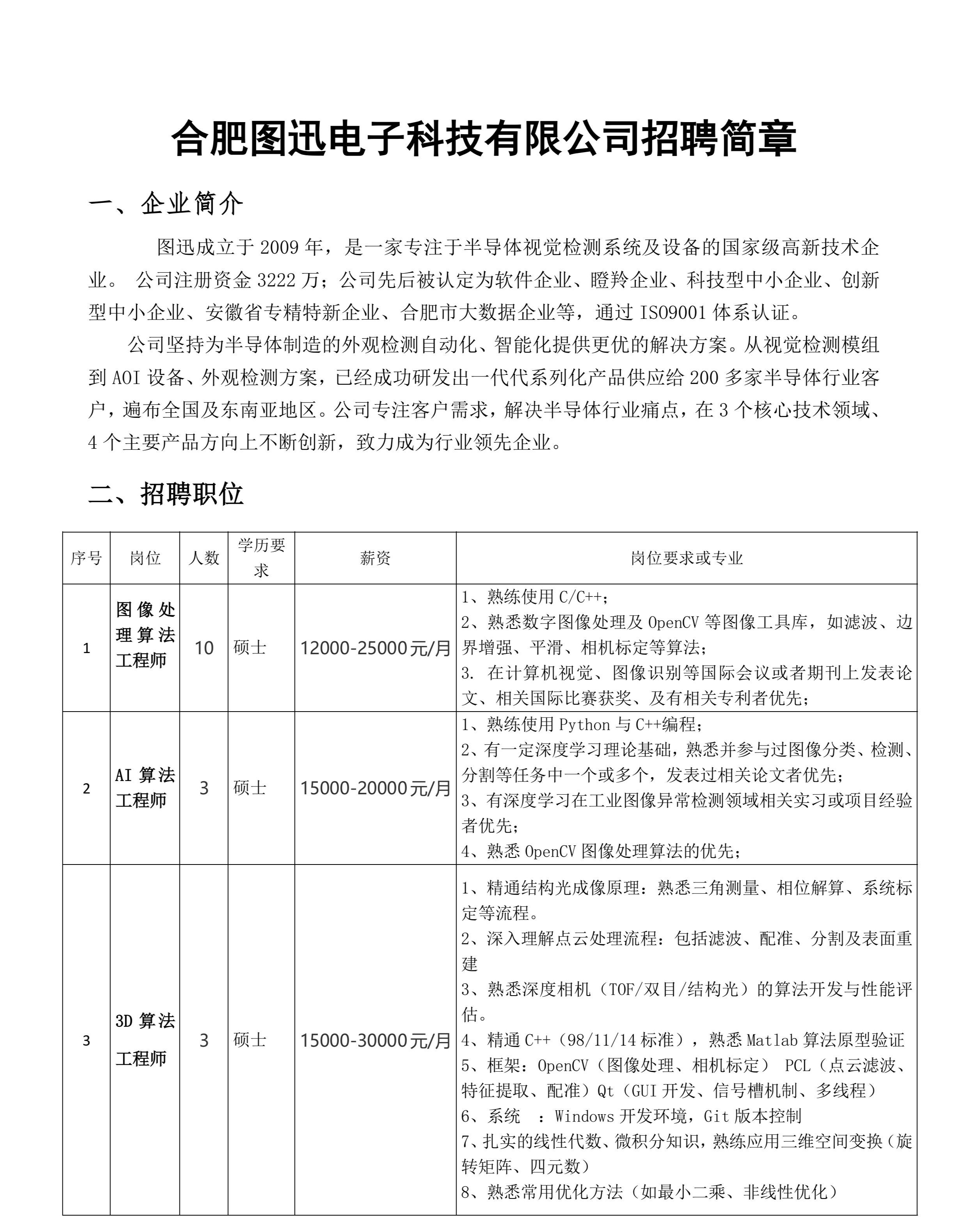 合肥图迅电子科技有限公司招聘