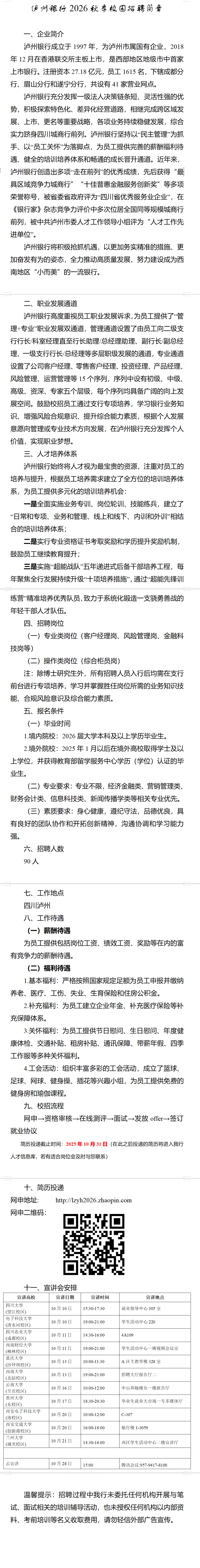 泸州银行2026校园招聘