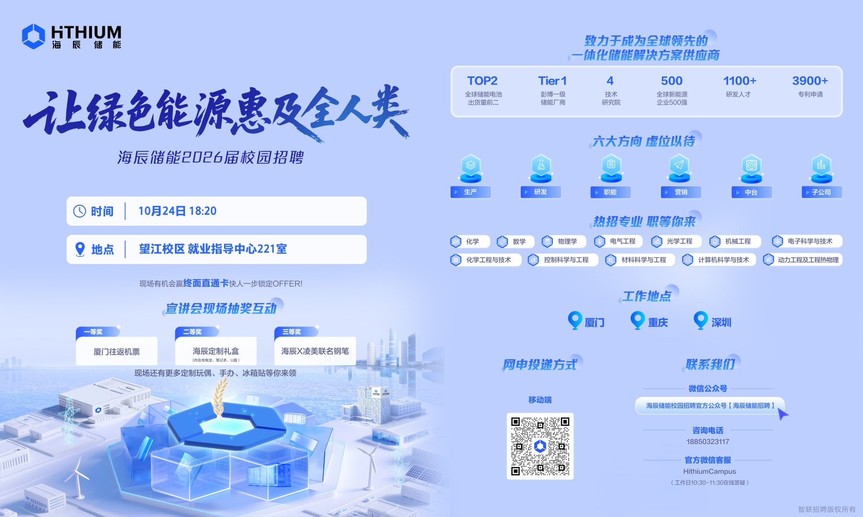 诚邀您参与best365中国官方网站站海辰储能2026届校园招聘宣讲会。一站式了解海辰储能高潜赛道、企业福利、晋升通道!
