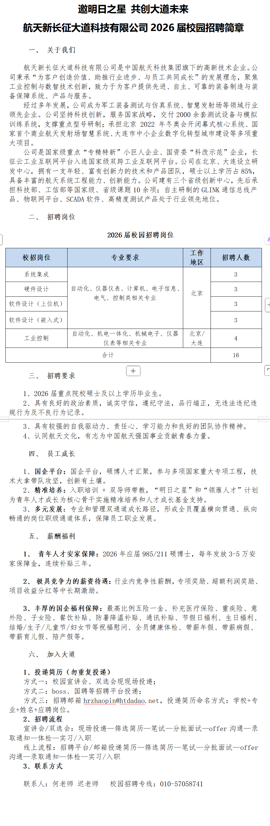 航天新长征大道科技有限公司2026届校园招聘