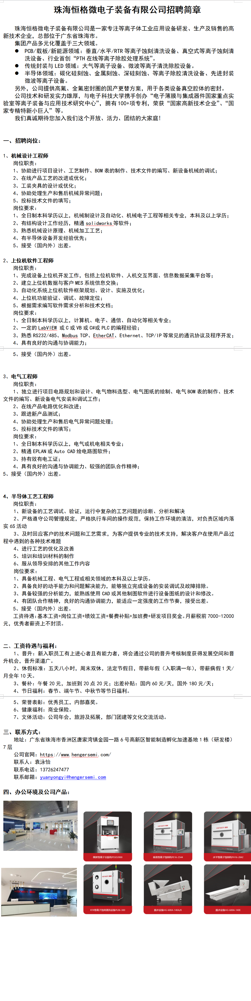 珠海恒格微电子装备有限公司招聘