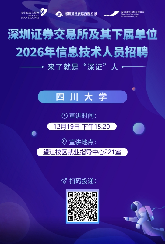 12月19日 下午15:20 望江校区就业指导中心221室 深圳证券交易所招聘