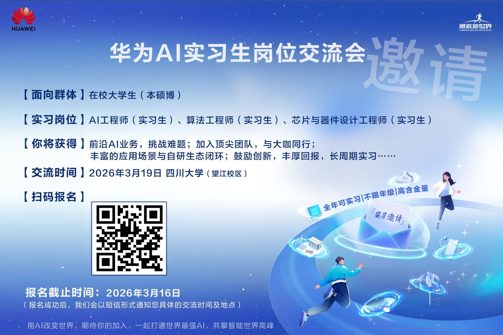 华为西南地区2026年校园大使招募与3月19日望江AI实习生岗位交流会