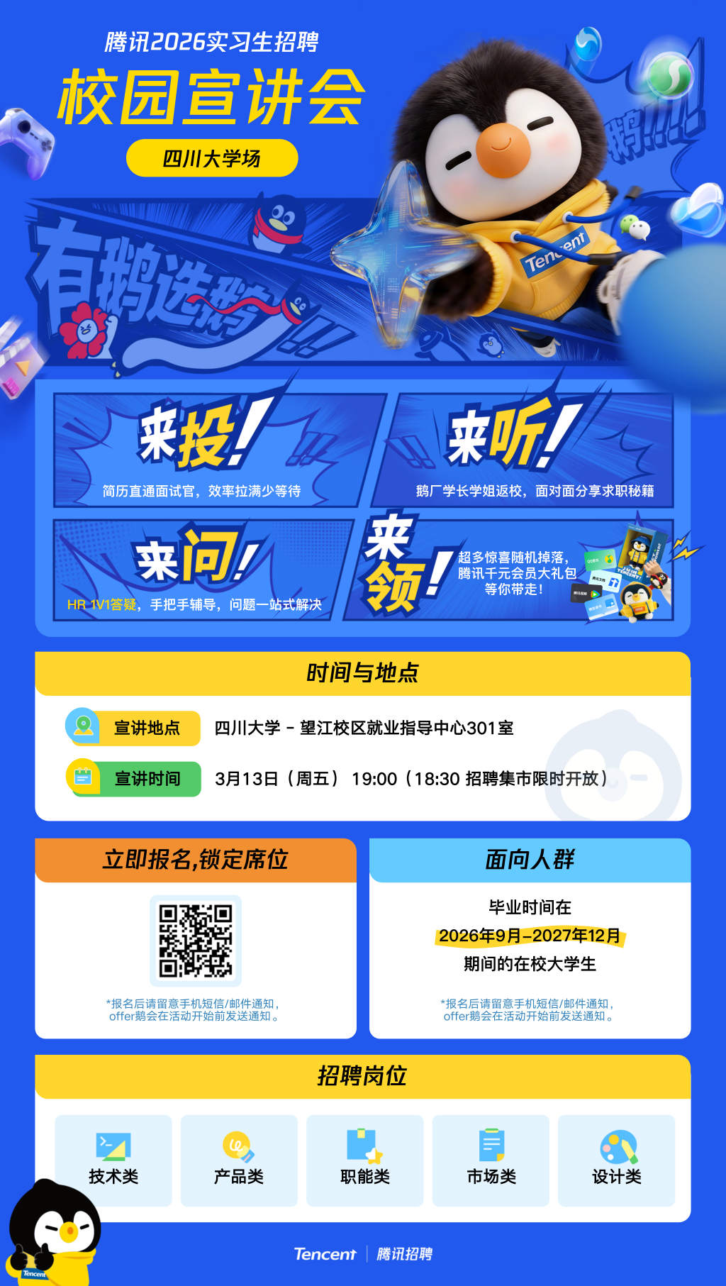 🔥腾讯2026实习生招聘宣讲会|best365中国官方网站专场即将开始
