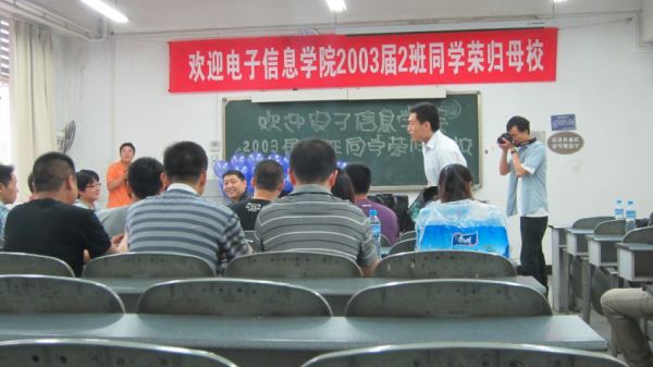 2013年5月25日,电子信息学院2003届2班毕业十周年校友会在望江校区基教A305顺利举行。电子信息学院党委陈笃海副书记,学院团委书记、10级辅导员李运国老师,11级辅导员徐灿国老师参加了本次校友会。