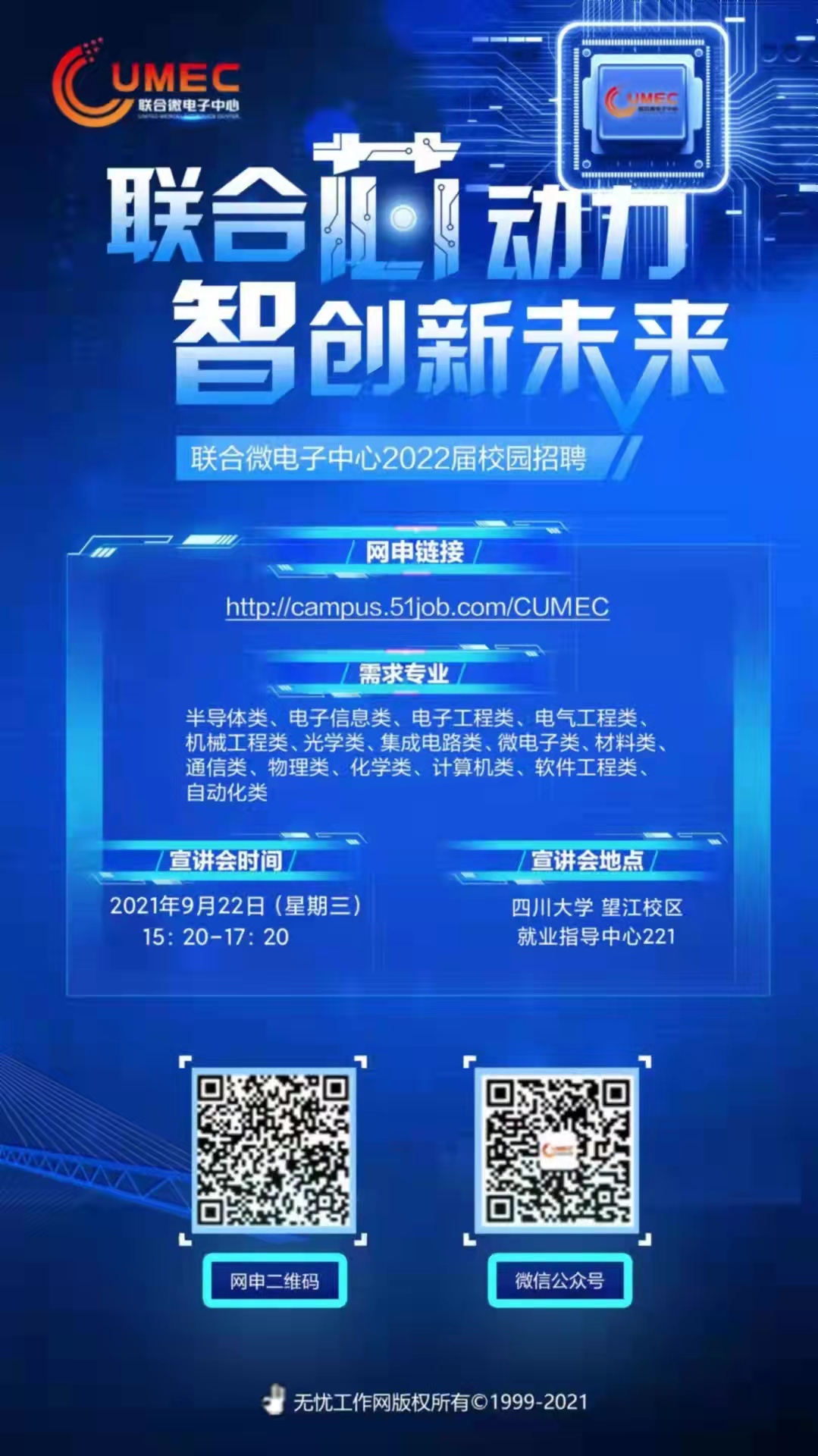 联合微电子:中电科旗下央企,川大硕士起薪19万,位于重庆,各种福利齐全。