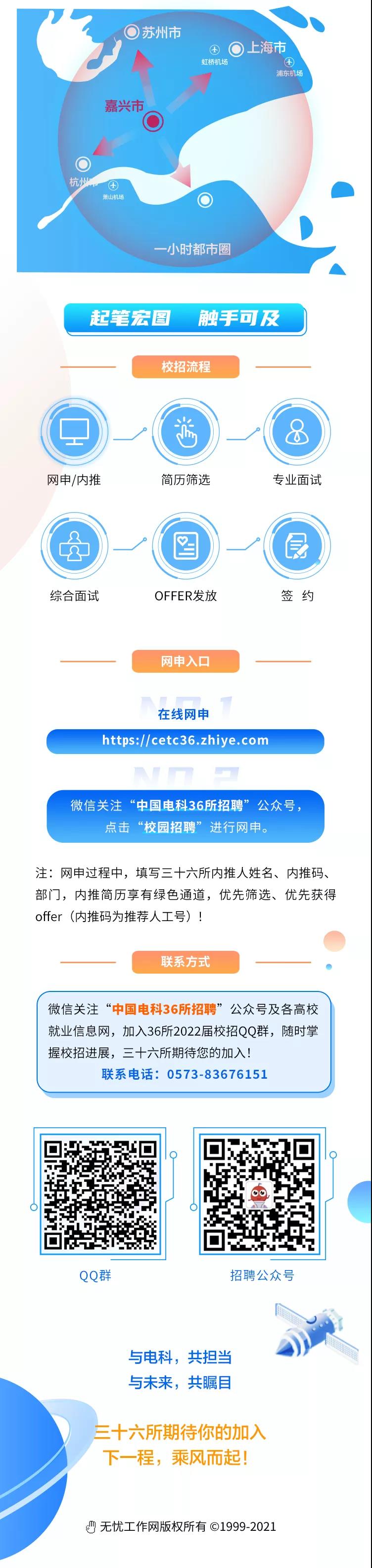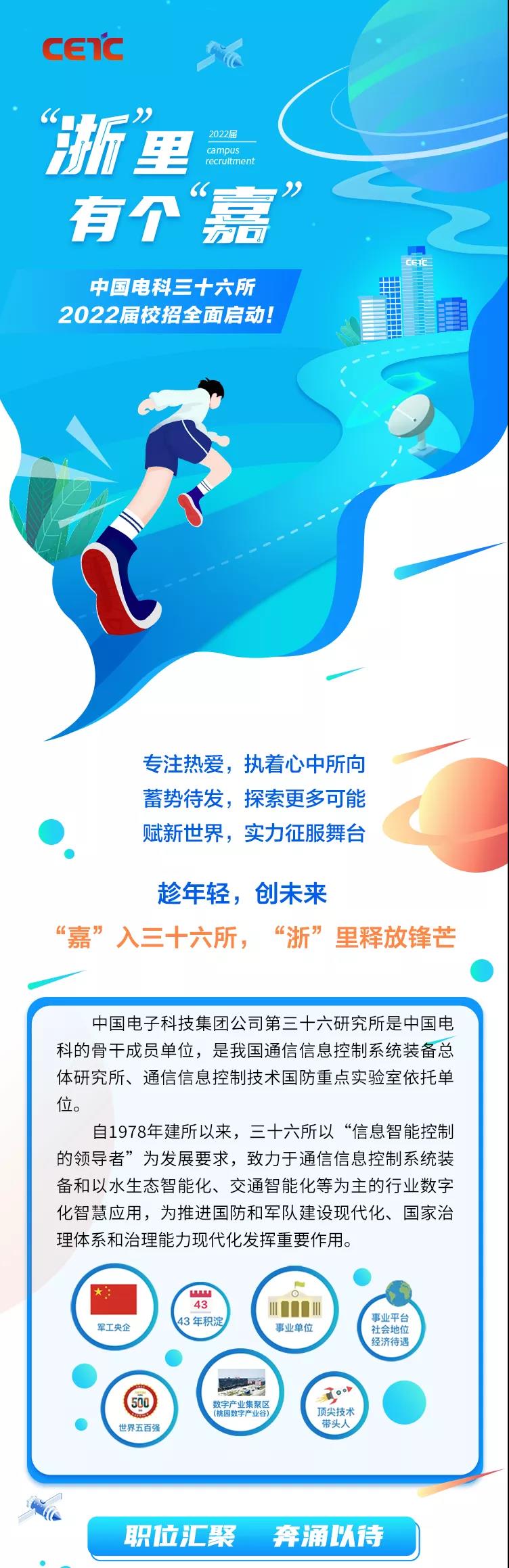 中国电科三十六所2022届校招宣讲会:【best365中国官方网站】9月26日15:20-17:20,就业指导中心221室★事业编制、安家费(硕士15-28万、博士35-68万)等福利,具体请登入各高校就业信息网查看,三十六所期待您的加盟!★请携带个人简历及相关材料参加现场宣讲,并完成网申,欢迎邀请其他同学参加现场宣讲会。