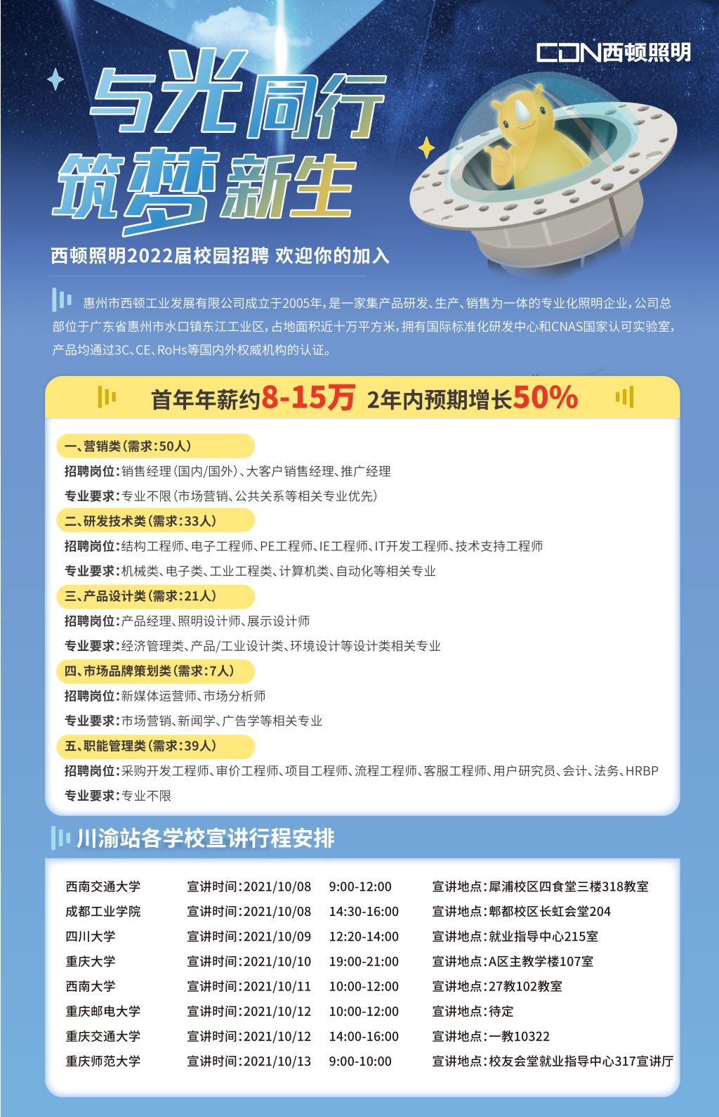 西顿照明---best365中国官方网站站即将开始专场招聘会等你来!年薪约8-15万 免费吃住,每年至少一次调薪机会;“狮”系列发展路径,专人带教,各种学习机会、旅游、体检等多项福利【网申链接】:https://www.cdn.cc/CampusRecruitment/ (一键式投递)【投递邮箱】:cdnhr@cdn-lighting.com【公司官网】:www.cdn.cc