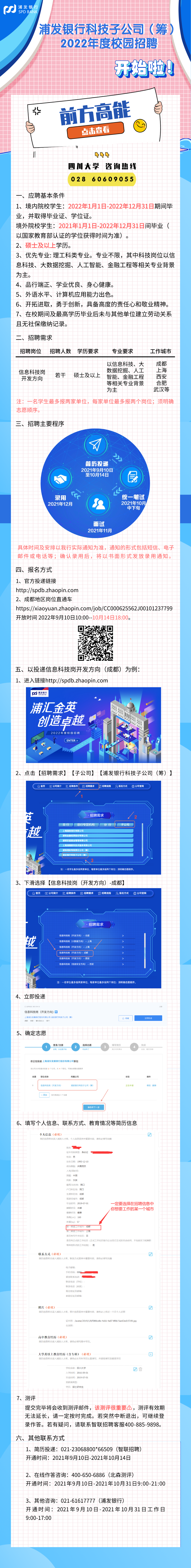 请登录 http://spdb.zhaopin.com ,进行在线应聘报名,开放时间 2021 年 9 月 10 日 10:00—10 月 14 日 18:00