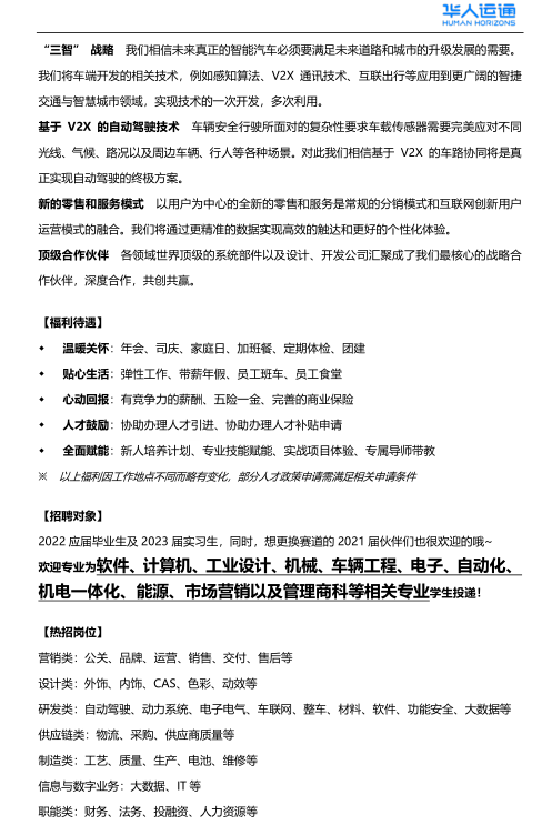 ※     岗位详情以华人运通校招官网为准