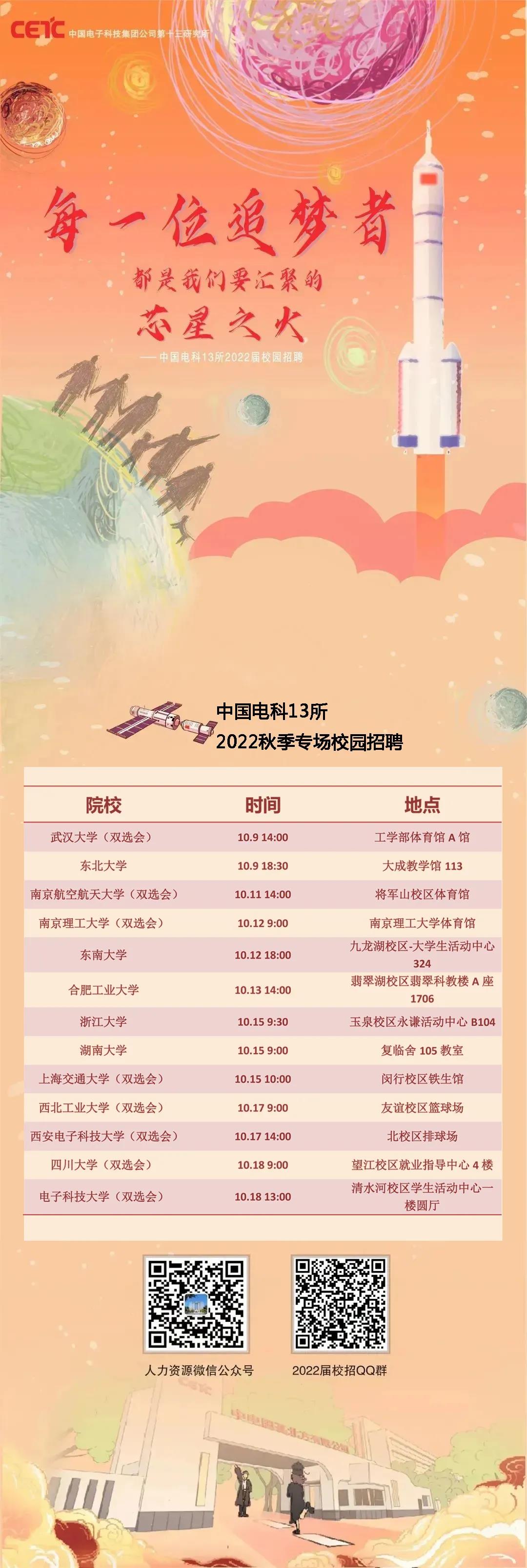 10月18日9点就业中心4楼中国电科13所招聘