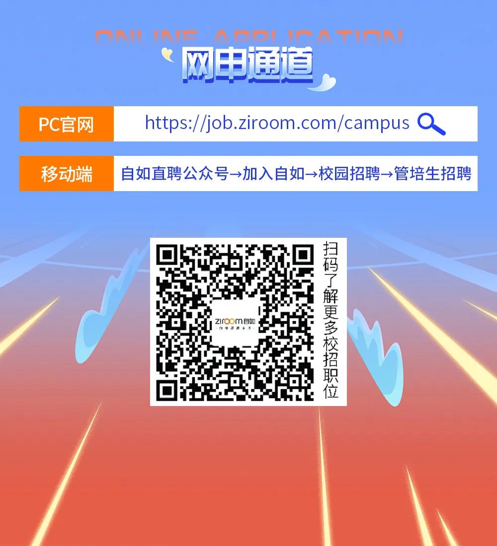 自如集团管培生招聘火热进行中,产研、职能、市场等多类岗位可供选择,福利待遇优厚!疫情影响无法线下见面,同学们快快来网申吧