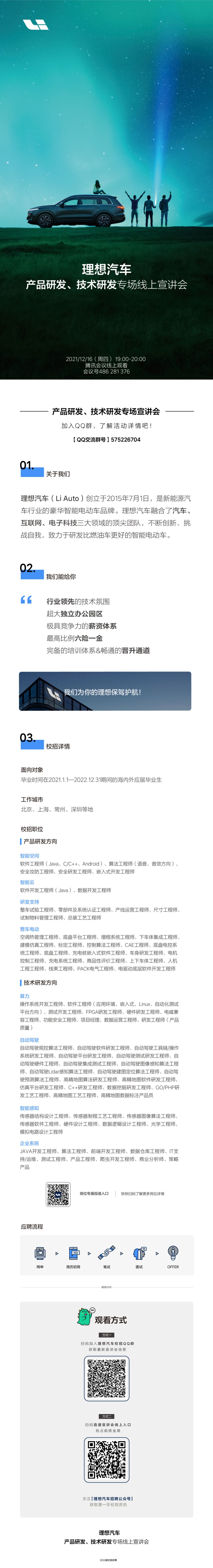 【空中宣讲会】理想汽车2022研发岗位专场宣讲会