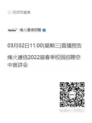 🥰3月2日中午11:00烽火通信2022届春招空宣直播等你来!🔸玩转园区➕打卡美食🔹热招岗位➕1V1终面体验三轮抽奖,超级大礼等你拿点击链接即可预约观看https://mp.weixin.qq.com/s/ksAx_H2Qj5_pG3Z-E1Q6iA