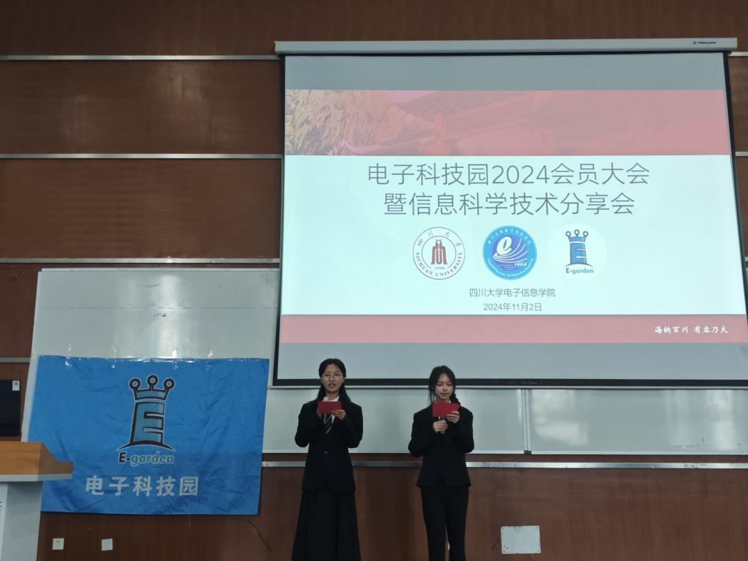 2024年11月2日上午9点30分,电子科技园2024会员大会暨信息科学技术分享会在综合楼C407顺利举行。出席本次活动的有电子信息学院党委彭舰书记、廖勇明副书记、杨火木教授、华伟副教授、张宏副教授、李玮副教授、吴周杰副教授、孟庆党老师、陈晓娟老师、陈林老师,优秀学长张子奕、肖迪,以及电子信息学院24级同学。