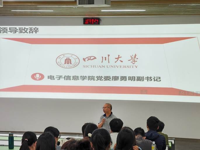 首先,电子信息学院党委书记彭舰致辞。彭书记从个人的经历出发,为同学们指引方向并预祝同学们考研成功。第一点就是要坚定考研的信心,想清楚自己考研的目的;第二点是趁早制定考研计划,有规划地去进行考研准备;第三点是寻找适合自己的考研复习方法,有问题及时向老师或有经验的学长学姐寻求帮助。