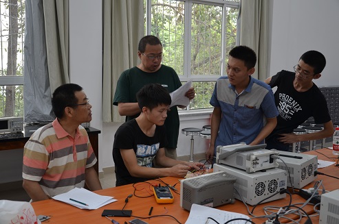 2016年7月29日和30日,电子信息学院的指导老师对参加本次四川省电子设计竞赛的同学完成的作品进行了校内测试,参加本次测试的有副院长周新志教授、徐家品教授、王正勇副教授、华伟副教授、植涌老师、夏文龙老师、孟庆党老师、刘俐老师、陈晓娟老师以及李运国老师。