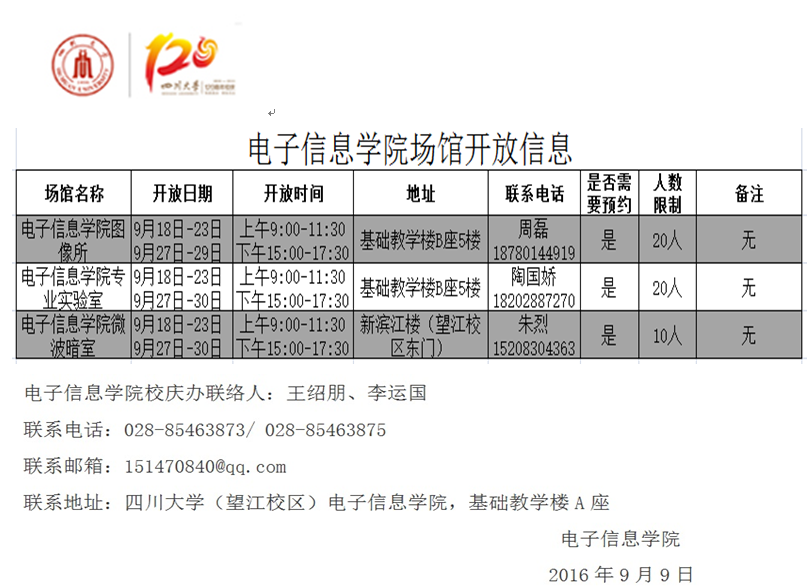 电子信息学院场馆开放信息