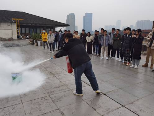 本次培训还组织了灭火器实操演练和疏散演练。教官向大家详细介绍了灭火器的使用方式与注意事项,并指导部分同学亲自操作灭火器灭火;接着又通过模拟火灾发生时的紧急疏散,将抽象的安全知识变为具体的实战演习,大大增强了大家的自护自救技能,真正落实了消防安全教育工作。